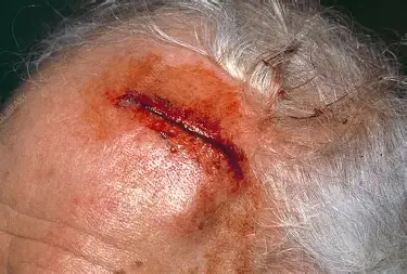 A clean, straight cut into the skin, often caused by sharp objects like knives or surgical tools. Unlike lacerations, which have jagged edges.