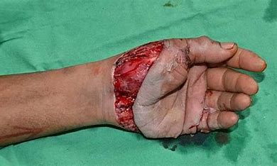 An amputation injury occurs when a limb or extremity is partially or completely severed due to trauma, medical conditions, or surgical intervention.