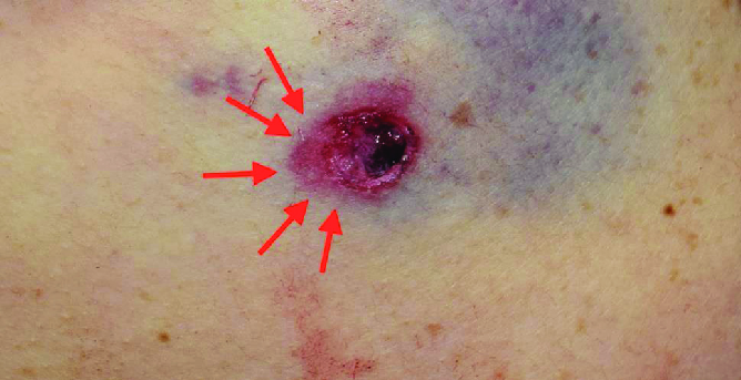 Puncture wounds are caused by a sharp object piercing the skin, such as being stabbed or standing on a nail creating a small but potentially deep hole. These wounds don’t usually bleed much, however underlying organs and blood vessels may be severely damaged with potential infections.