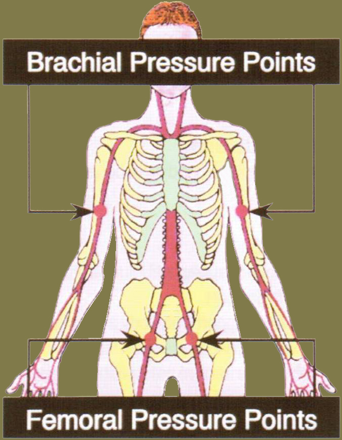- If bleeding is excessive, use indirect pressure points (e.g., brachial or femoral artery).