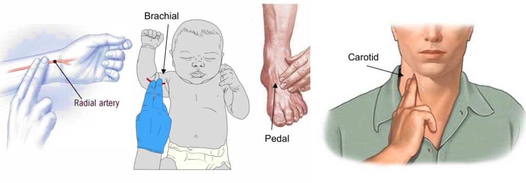 - Neck (Carotid Pulse): Place your fingers on the side of your neck, just below your jawline, and press gently until you feel the pulse.