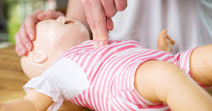 Give the baby another 30 compression’s with two fingers placed in the center of babies chest between nipple line. Compress to the depths of 2-3 cm and at a rate between 100-120 compression’s per minute..